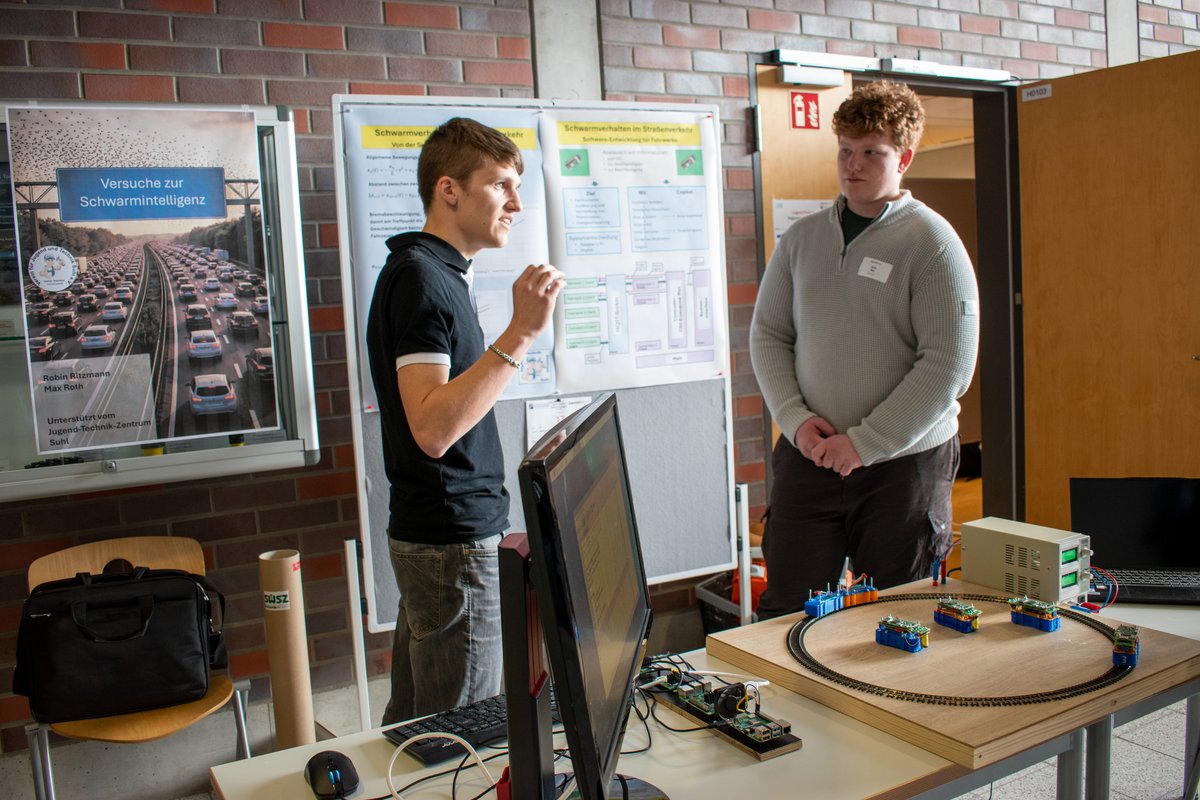 There was a lively atmosphere in the lecture hall building on Tuesday: 48 students from seven schools came to the university to present their research projects at the Southwest Thuringia regional competition of Jugend forscht. “Jugend forscht has been around since 1965 – longer than I've been alive,” said Vice President Prof. Thomas Seul at the opening. “Be happy that you can be here and enjoy the event,” he called out to the students. Seul reported that some Jugend forscht participants had even gone on to have really good careers.