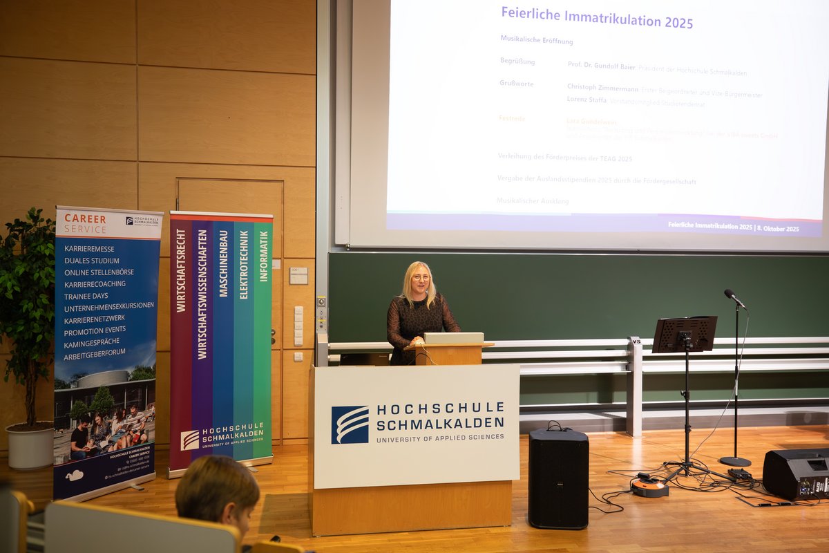 Seit dieser Woche ist wieder Leben auf dem Campus: Das Wintersemester hat begonnen und damit sind die Studierenden zurück in Schmalkalden. Traditionell lädt die Hochschule alle neuen Studierenden zur Immatrikulationsfeier ein, die gestern im Audimax stattgefunden hat.
