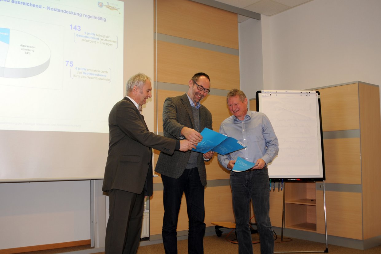 Auch in der aktuellen Projektrunde bestätigen die Ergebnisse eine sichere und zuverlässige Versorgung der Thüringer mit Trinkwasser. „Die von uns untersuchten Versorgungsunternehmen arbeiten sehr effizient und werden auch die zurückgehenden Einwohnerzahlen gut bewältigen können“, sagte Projektleiter Professor Hubert Dechant. An der aktuellen Studie haben sich 17 Thüringer Trinkwasserversorger sowie 15 Abwasser-Entsorgungsunternehmen beteiligt. Damit sind rund 47 Prozent des Thüringer Wasserbedarfs und rund 34 Prozent der an die Abwasserentsorgung angeschlossenen Einwohner erfasst. Für Thüringer Umweltstaatssekretär Olaf Möller sind es aber noch zu wenige Projektteilnehmer: „Wir suchen noch Teilnehmer für das Benchmarking-Projekt, insbesondere bei den Abwasserversorgern. Nur wer sich dem Vergleich stellt, kann sich verbessern.“ Ansonsten wäre die Fortführung des Projekts in Gefahr.