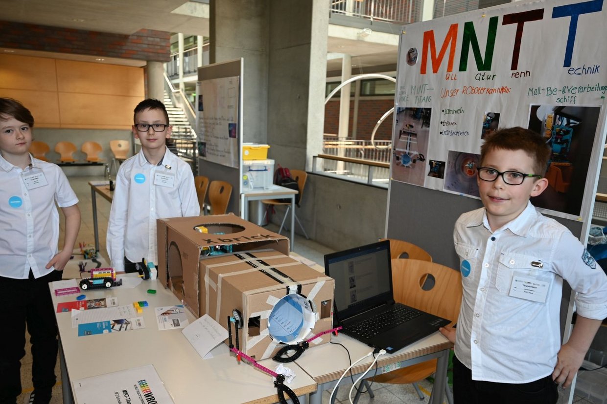 Für das Deutschland-Finale in Freiburg konnten sich vier Teams qualifizieren, davon die MINT-Titans des Schülerforschungszentrums: Eric, Vince und Luis von der Regelschule Floh haben eine Müll-Natur-Trenntechnik erfunden. Ein Müllsortierer aus Legosteinen trennt Restmüll, Altglas und Plastik. Seit Januar tüfftelten die Jungforscher jeden Donnerstag im Schülerforschungszentrum an ihrem Projekt. Generell spielt das Thema Nachhaltigkeit bei allen Teams eine große Rolle: Meere von Müll zu befreien, Korallenriffe zu schützen oder naturgegebene Elemente zur Energiegewinnung zu nutzen – dies ist den Schülern sehr wichtig. „Wir hatten mal gehört, dass die Hälfte der Korallen am Great Barrier Rief abgestorben sind und wollten was finden, wie man das verhindern kann. Am Anfang wollten wir, dass der Roboter Müll an einer bestimmten Stelle sammelt. Dann sind wir aber auf die Fluoreszenz gekommen und haben uns dafür entschieden“, erzählen Jana und Zoe vom Philipp-Melanchthon-Gymnasium Schmalkalden.